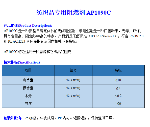 紡織品專用阻燃劑AP1090C 2022-4-29 本文被閱讀 2150 次